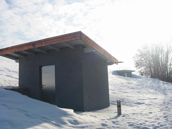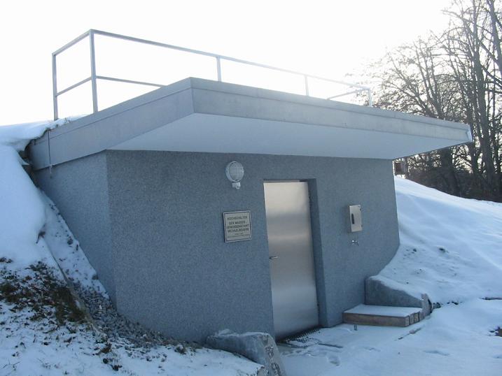 Technische Daten: Anzahl der Behälterbecken 2 Speicherkapazität der Becken 2 x 100 m³ GPS-Koordinaten östl. Länge: 13°01'22,9'' nördl. Breite: 48°01'28,4'' Der Hochbehälter am Schönberg besteht aus dem Wasserspeicherbereich und dem Bereich für die