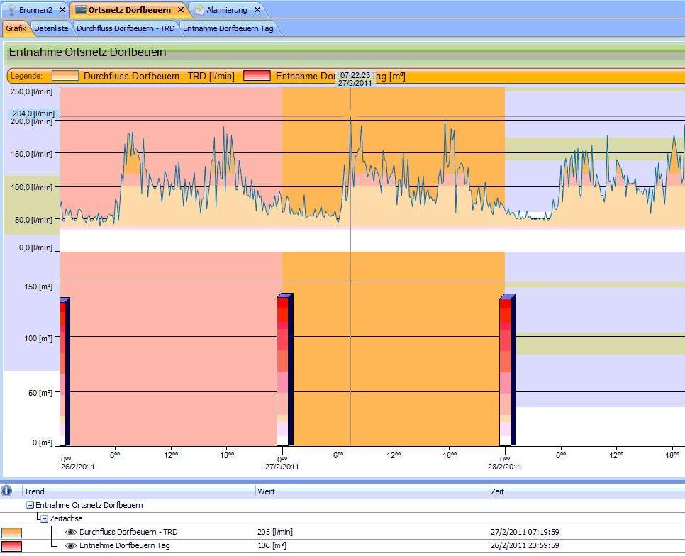 In Trend-Diagrammen wird die Entwicklung der einzelnen Messwerte grafisch dargestellt. Diese Funktion unterstützt die Beurteilung des aktuellen Betriebszustandes und die zukünftige Entwicklung.