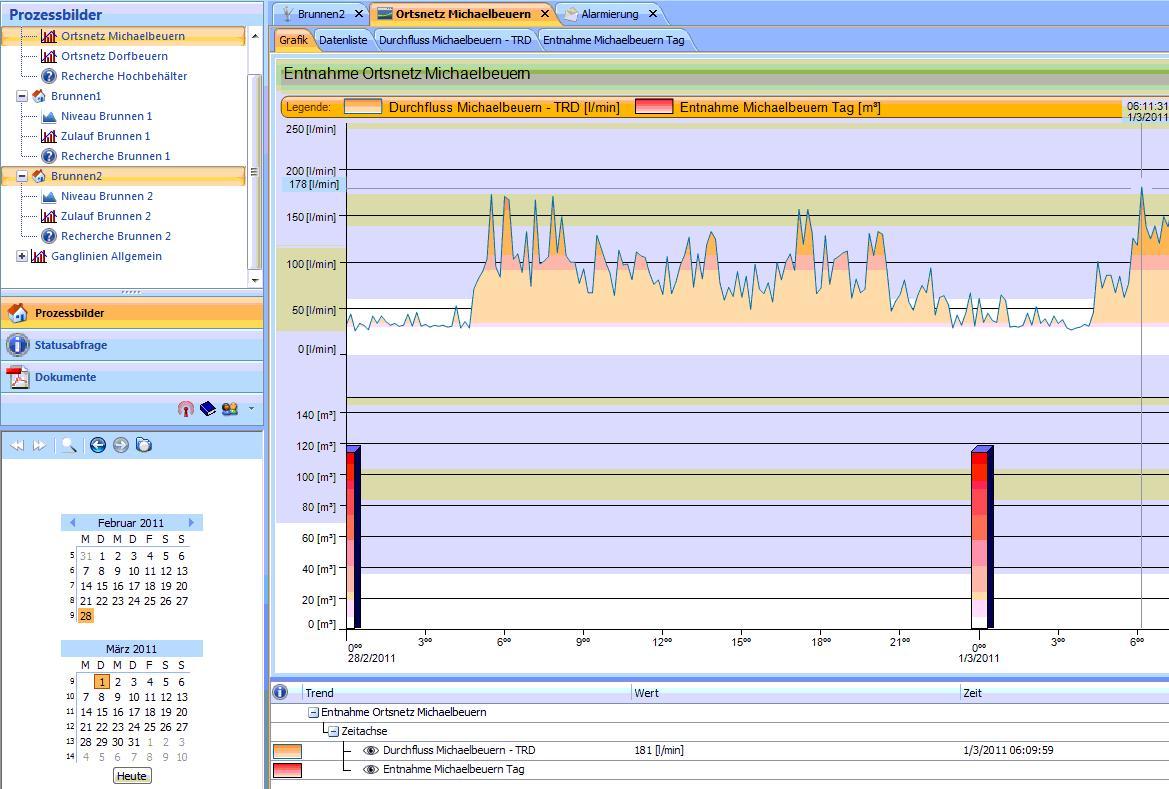 Die Software "MSYS.AQUA" der Firma MSS Elektronik visualisiert den Betriebszustand anhand von Anlagenbildern, Diagrammen und Datenprotokollen. Zudem wird die Software für die Überwachung,