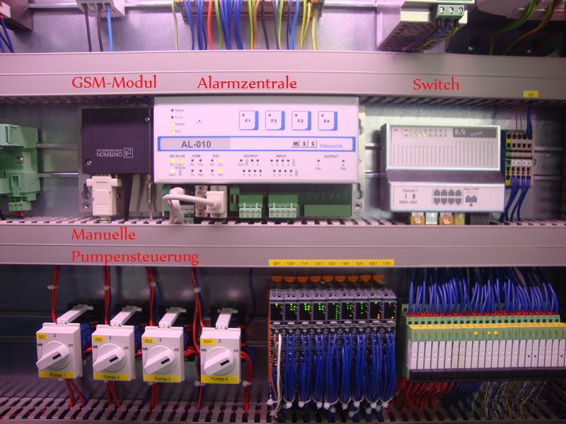Schaltzentrale im Hochbehälter Steuerkomponenten inkl. GSM-Modul für