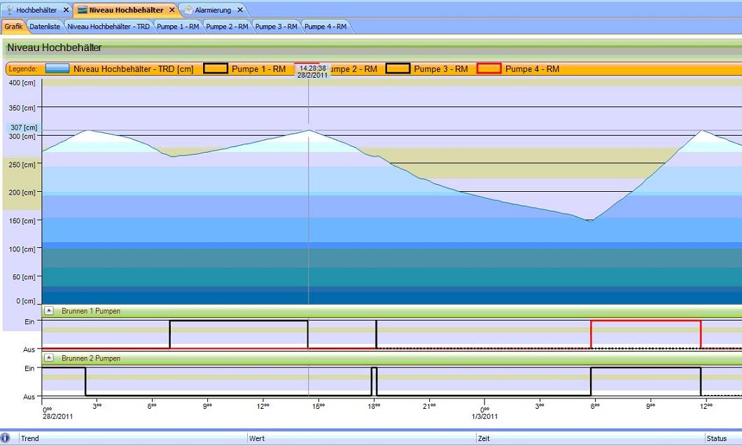 Bei der Erstellung der Berichte werden die anlagenspezifischen und organisatorischen Anforderungen berücksichtigt. So können z.B. mehrere Pumpwerke oder eine komplette Funktionsgruppen in einem Bericht zusammengefasst werden. Die Berichte und Grafiken können zudem im Excel-Format ausgegeben werden, so dass eine individuelle Bearbeitung möglich ist.