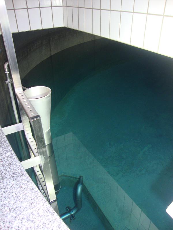 Befüllen, Entleeren und Restentleeren, Probenentnahmestellen). Das Wasser wird in zwei Behälterbecken